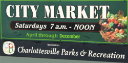 City Market offers fresh produce, herbs, plants, grass fed meats, crafts, and baked goods from local vendors every Saturday, April - December. The market features over 100 vendors every Saturday morning. City Market is located in downtown Charlottesville at the corner of Water Street & 2nd Street SE. Hours of Operation: Saturdays, April - November (Thanksgiving): 8 am - 1 pm