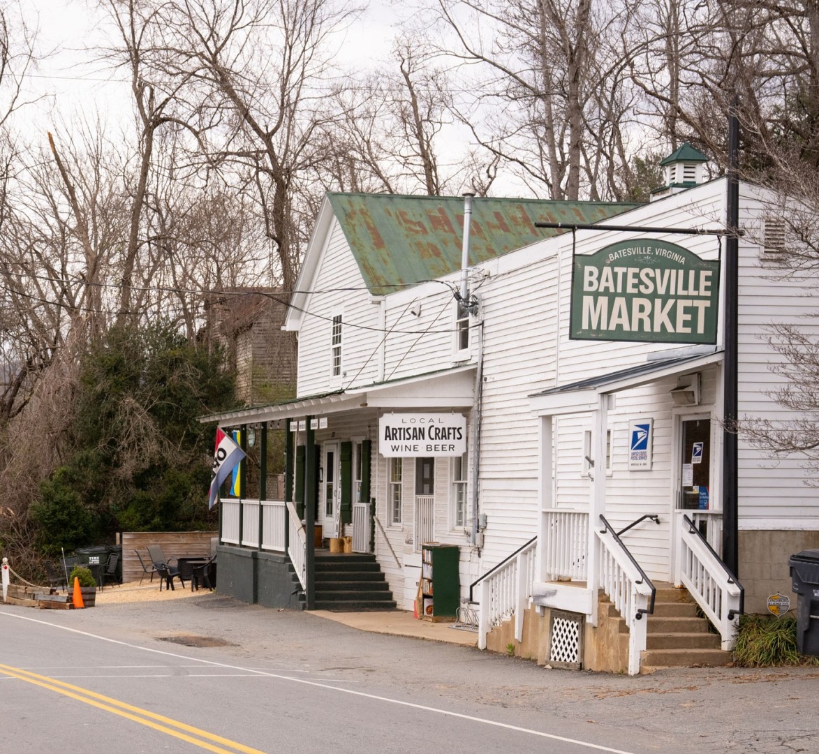Constructed around 1900, the Market has had several incarnations, originally as the Charles Joseph Store, then for three generations as the Page’s Store. More recently it has been known as the Batesville Store and the Plank Road Exchange, and is now is the Batesville Market. Batesville, Virginia, is located on the beautiful old Plank Road that historically connected the Shenandoah Valley to the James River, used for transporting goods to Richmond. We are about 20 minutes from Crozet, Charlottesville or Waynesboro, and conveniently located between Monticello and Wintergreen, near the Pippin Hill Farm and Vineyards, Veritas Vineyards, Pollak Vineyards, King Family Vineyards, Cardinal Point and half a dozen other local wineries.