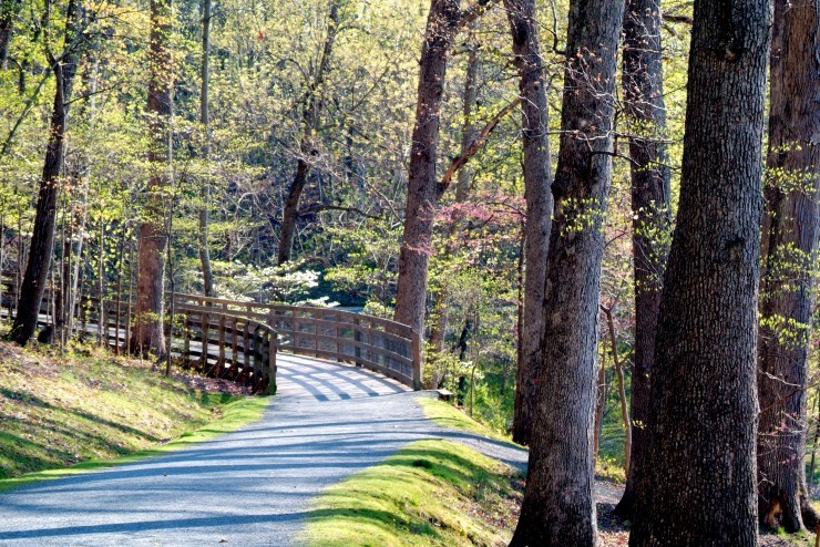 With native hardwood forest, deep ravines and spectacular views of the Blue Ridge Mountains, the trail winds its way toward Monticello and back in a very manageable four miles. A maximum grade of 5% keeps it completely accessible to walkers, cyclists and those in wheelchairs.