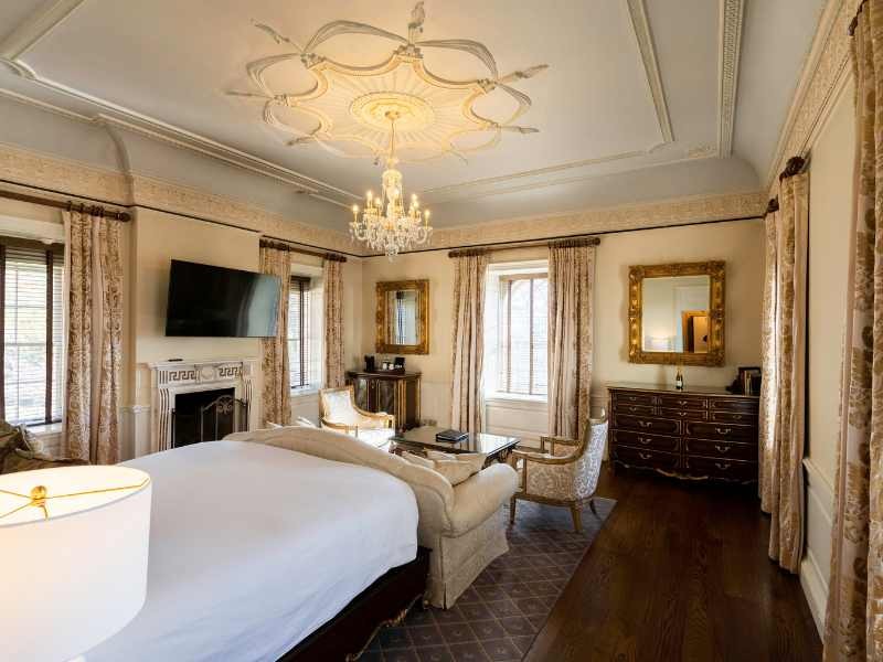 The 26,000-square-foot 45-room mansion has been called “one of America’s true treasures.” Reminiscent of a classic Georgian-style home, Albemarle Estate epitomizes high-style country living in the tradition of the English country manor. Each room offers breathtakingly intricate details that will amaze, including twenty-foot hand-carved plaster ceilings, antique English rococo mantels, hand-painted wallpaper, crystal chandeliers, 150+-year-old English oak library, hand-carved brass fixtures, and more.