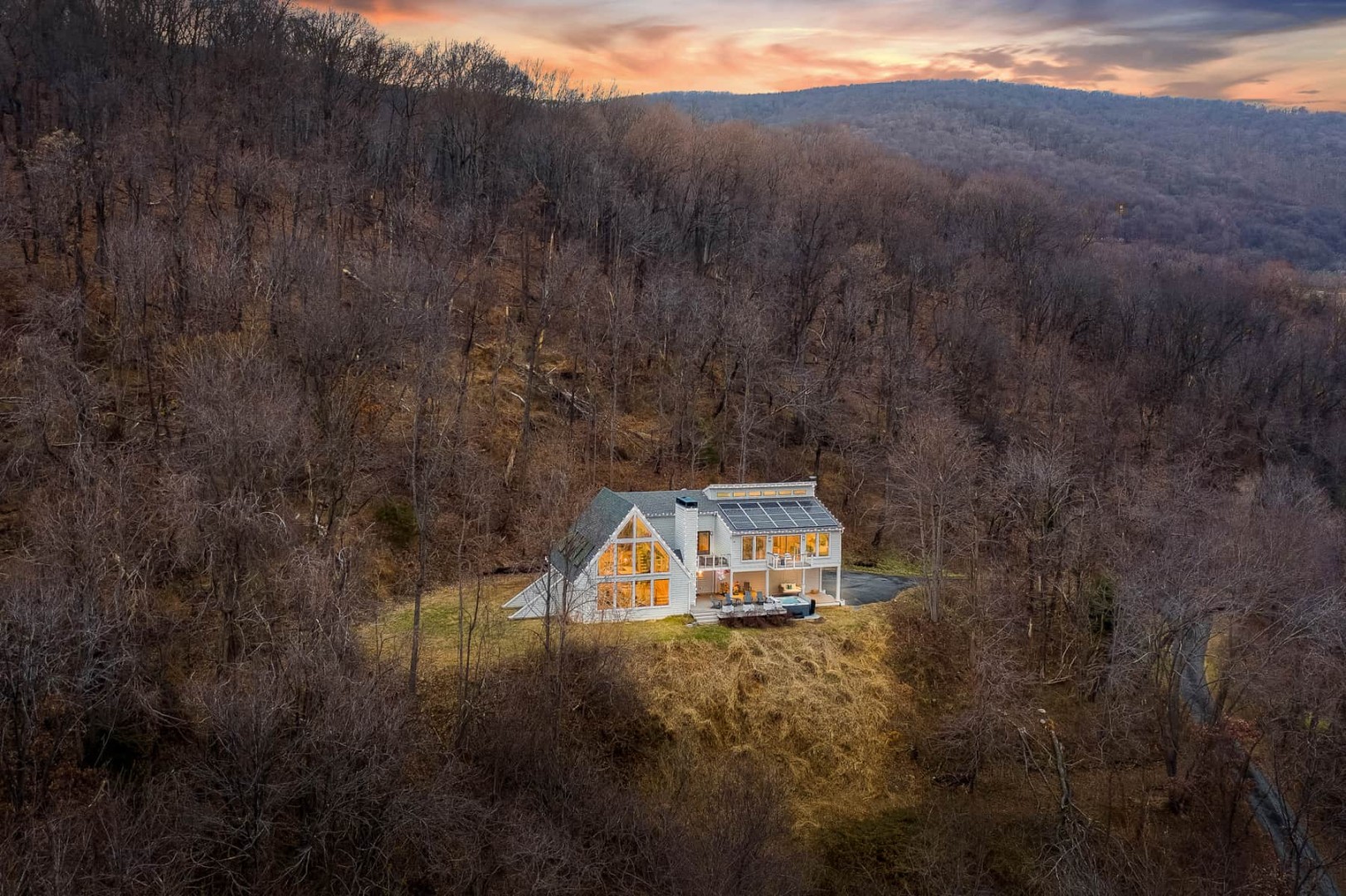 A spacious, bright modern A-Frame on 7+ acres with plenty of open space and spectacular views of the valley and mountains beyond. Enjoy ever-changing views in the great room and master suite. A large, expansive porch with plenty of seating. The newly remodeled interior is decorated with modern touches and equipped with everything needed for a relaxing stay.