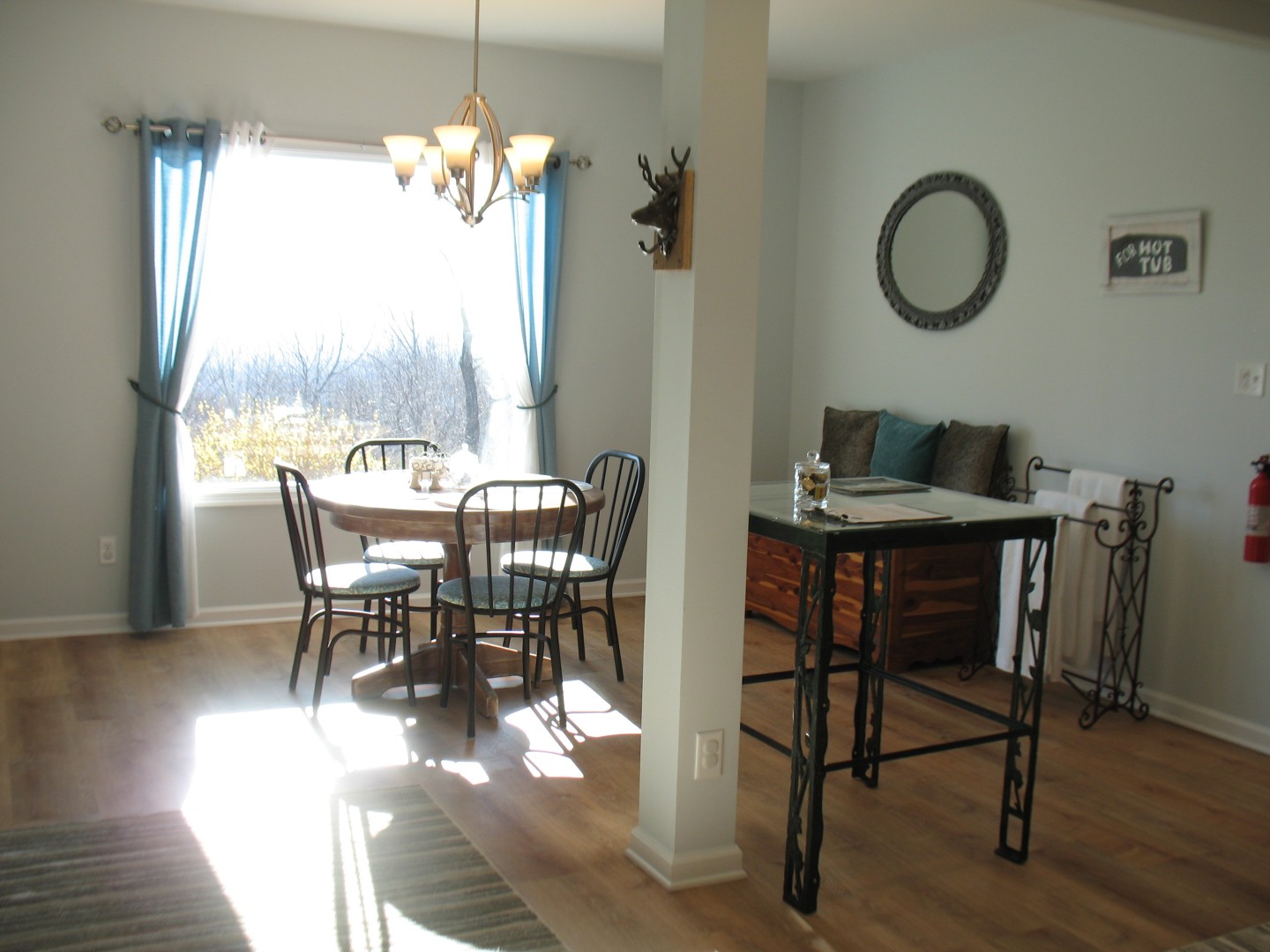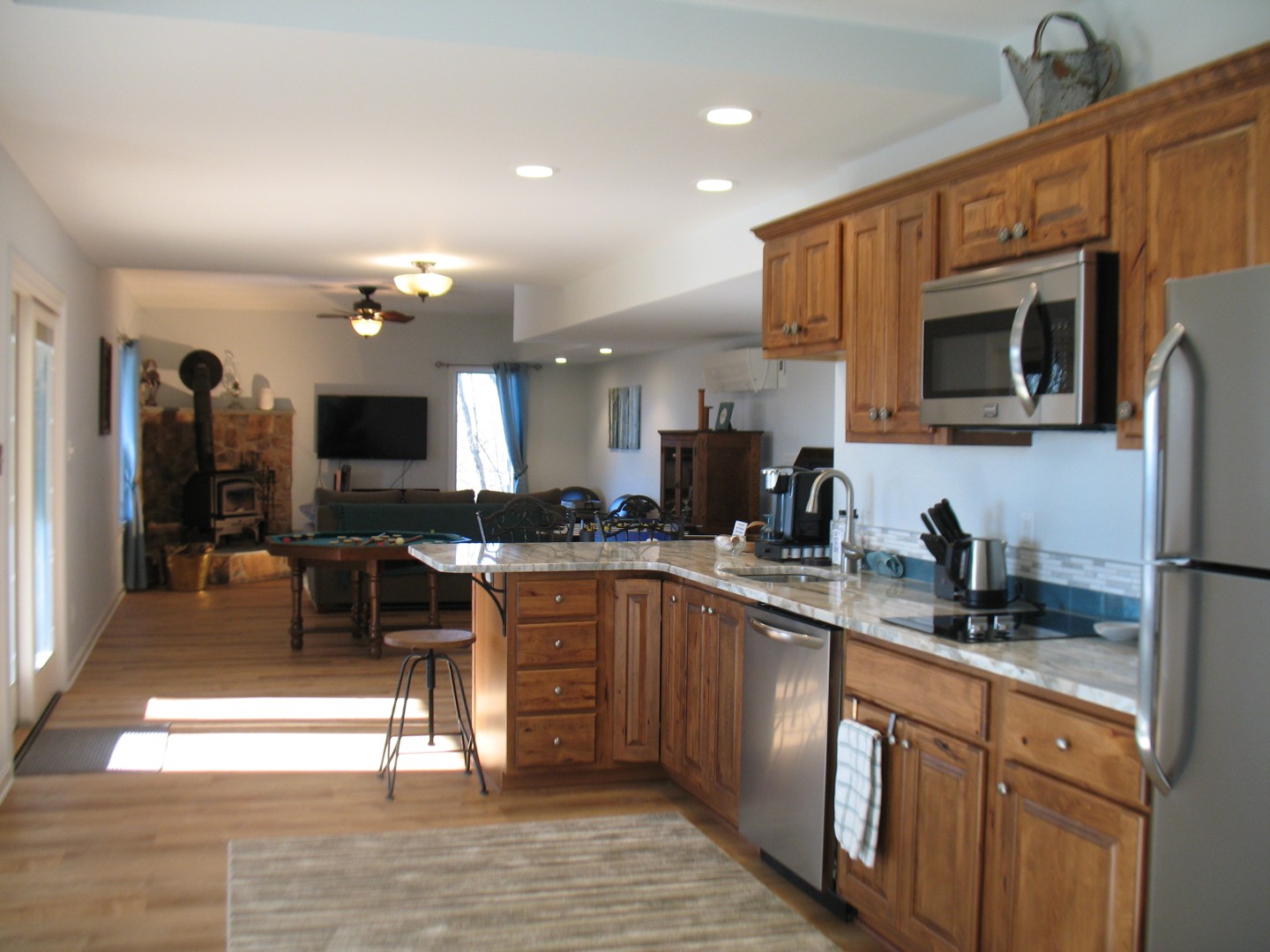 Our space is designed for longer-term visitors to the Charlottesville area, whether relocating, in a temporary job, or on sabbatical. Full kitchen (convection microwave instead of oven), washer/dryer, game room, woodstove, sofa bed in family room. Lots of natural light, walkout basement with sliding doors, private entrance. Utilities, wifi and mountain views included. Lots more information & photos on our website: www.paradisemountaincharlottesville.com/lodging.html